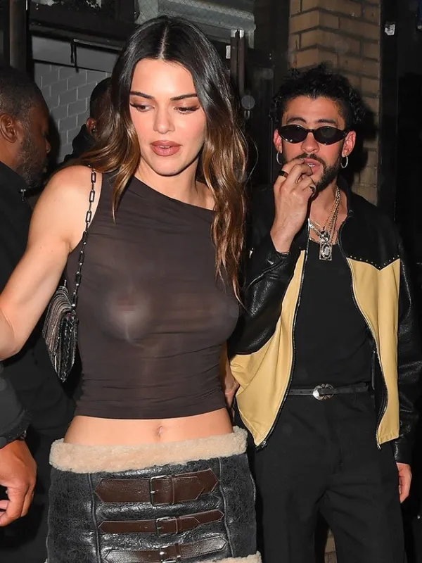 Kendall Jenner goes braless in sheer outfit on date night with Bad Bunny