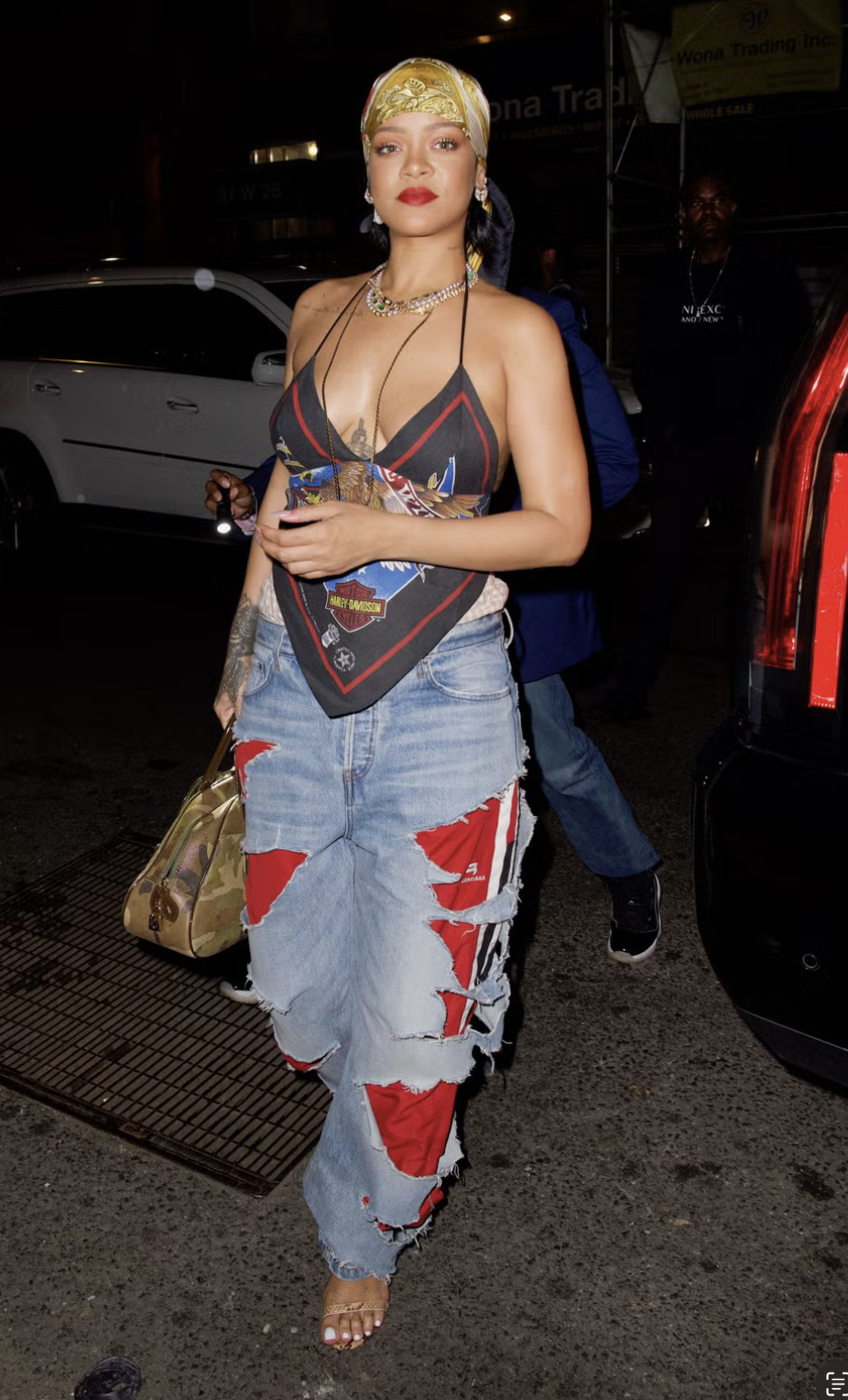 Rihanna Paired a Plunge Handkerchief Top With Super-Ripped Jeans Out With A$AP Rocky